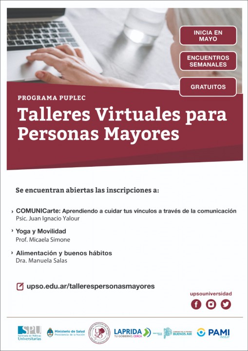 Continúa abierta la inscripción a los talleres virtuales para personas mayores, una iniciativa de la Universidad Provincial del Sudoeste y del que participa también el municipio de Laprida.
