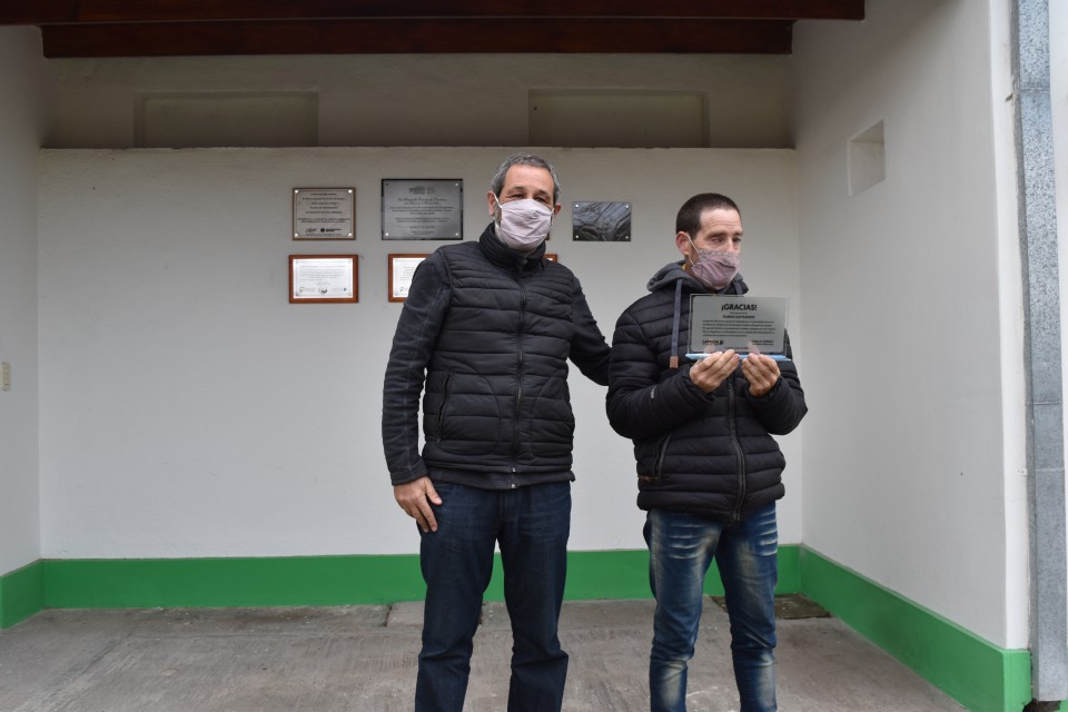 El Intendente Pablo Torres junto a Alfredo Irigoin descubrieron una placa que deja testimonio de los nombres de los primeros 6 trabajadores que tuvo la Planta de Tratamiento de Residuos Sólidos Urbanos de Laprida, siendo ellos Raúl Oscar Albo, Juan Carlos Cotti, Hugo Quinteros, Jorge Alberto Noli, Nelson Noli, Rubén Safraider, quienes además recibieron de manos del Intendente Torres una placa individual como reconocimiento por el trabajo realizado durante esos inicios en la Planta, en el caso de los fallecidos (Cotti, Albo y Safraider) la recibieron familiares directos que participaron del acto especialmente invitados.