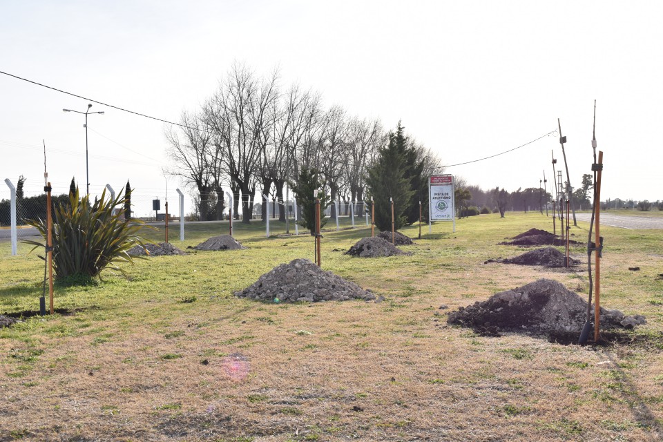 Empleados del área de forestación del municipio fueron quienes realizaron la colocación de estos nuevos ejemplares que se ubicaron algunos sobre el acceso al predio por la calle Papa Francisco y los otros el sector lateral que da a la calle Máximo Paz y en ese momento estuvieron el Secretario de Infraestructura Juan Errobidart, el Subsecretario de Servicios Públicos Manuel Pardal junto al Gerente de Camuzzi Laprida, Eduardo Martín