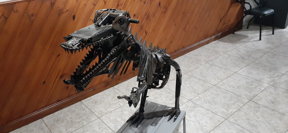 Juan Atilio Pérez, con su objeto artístico, LAPRISAURIO, categoría Adultos Mayores.