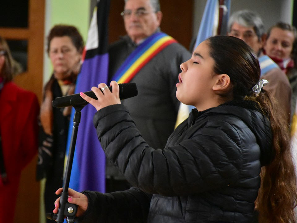 Con la dulce y potente voz de Josefina Calleri, que interpretó “Sube, sube”, de Mercedes Sosa, y acompañada con las palmas de los presentes, la música coronó el acto en conmemoración del Día de la Bandera.