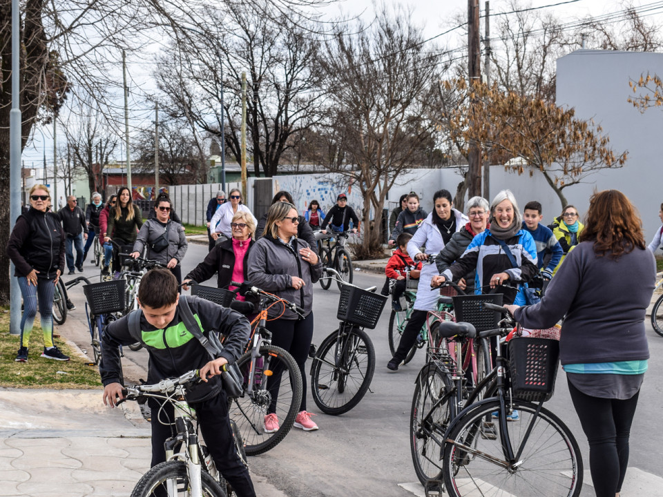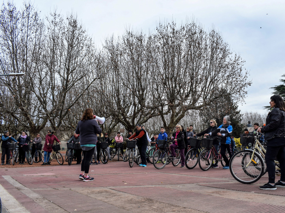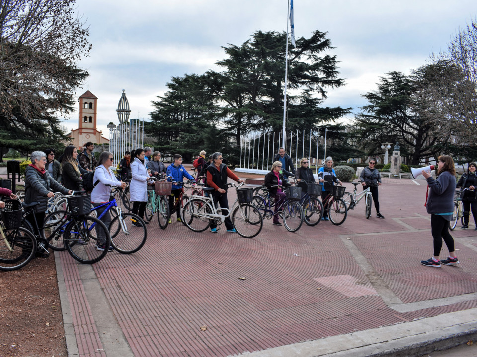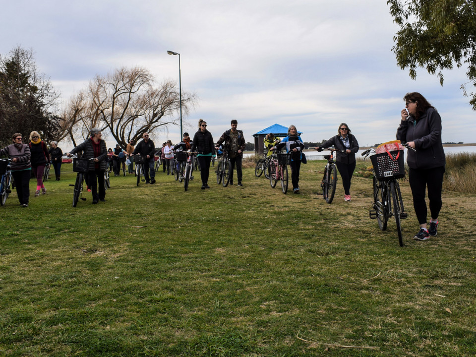Un grupo de 35 personas, entre grandes y chicos y muchas familias estaban listos para partir con sus bicicletas, acompañados por una linda tarde de sol y las condiciones ideales para pedalear.