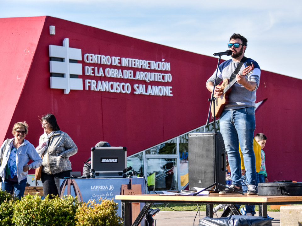El bicitour recorrió la inmensa obra de Salamone en nuestra ciudad; y luego quedó inaugurada la muestra “Más gloria”, en el Hall de Exposiciones del Palacio Municipal. Que reunió la obra de seis artistas lapridenses que mostraron sus creaciones al público.