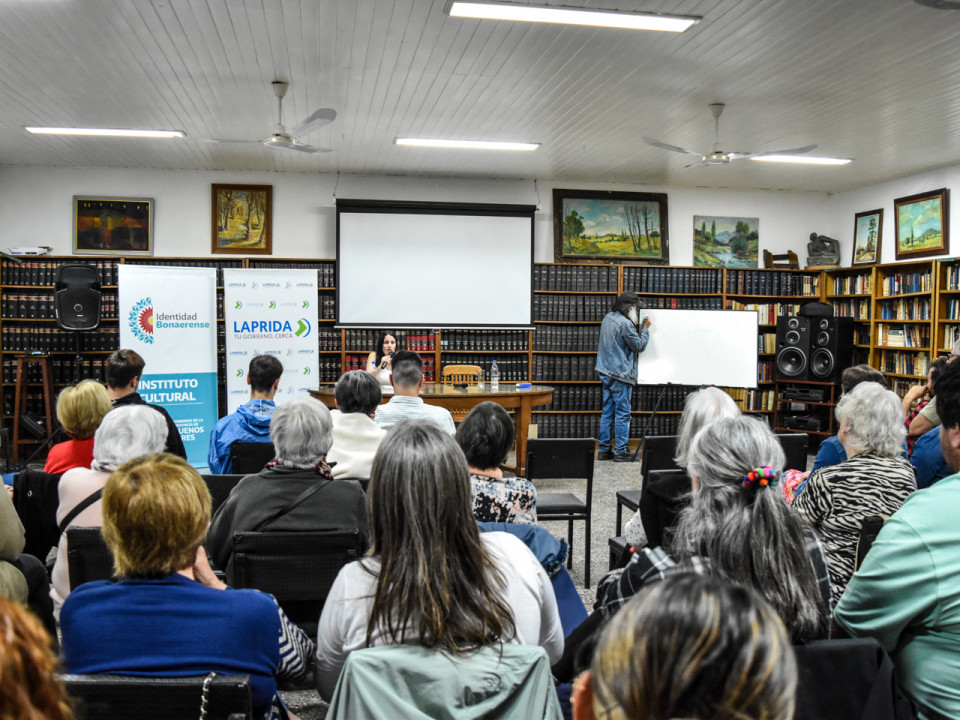 Con una presentación que giró en torno a compartir las diversas miradas sobre la identidad bonaerense, "Un viaje por el universo bonaerense", la charla estuvo eclipsada por el humor y las ocurrencias de Pedro Saborido, que mientras dialogaba con los presentes iba mechando la charla con analogías y contraposiciones sobre la construcción de nuestra identidad.