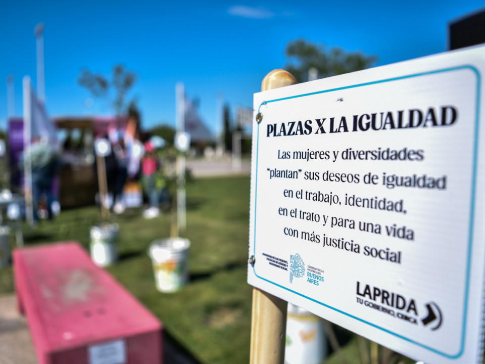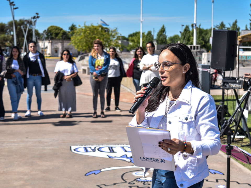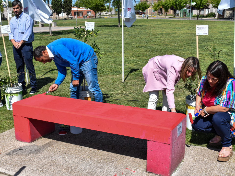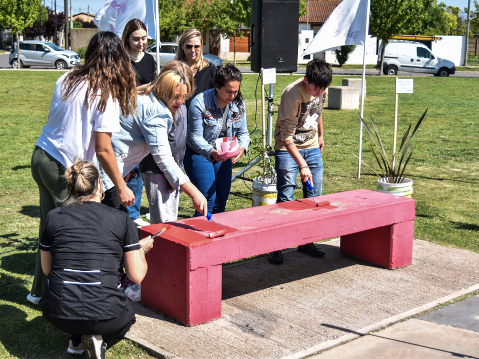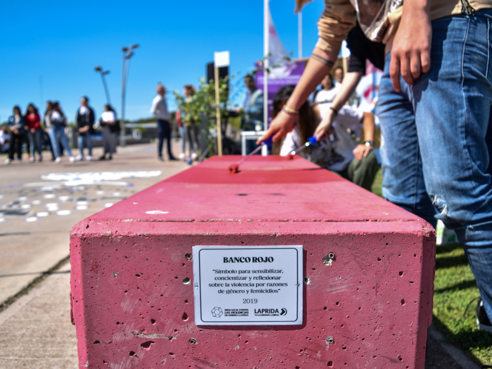 Allí se puso en valor el Banco Rojo, que recuerda a las mujeres víctimas de violencia de géneros, lo mismo ocurrió con un mural “Igualdad”, y se distribuyeron diversos materiales gráficos destinados a la concientización y también con información de dónde se puede acudir en caso de necesitarlo.