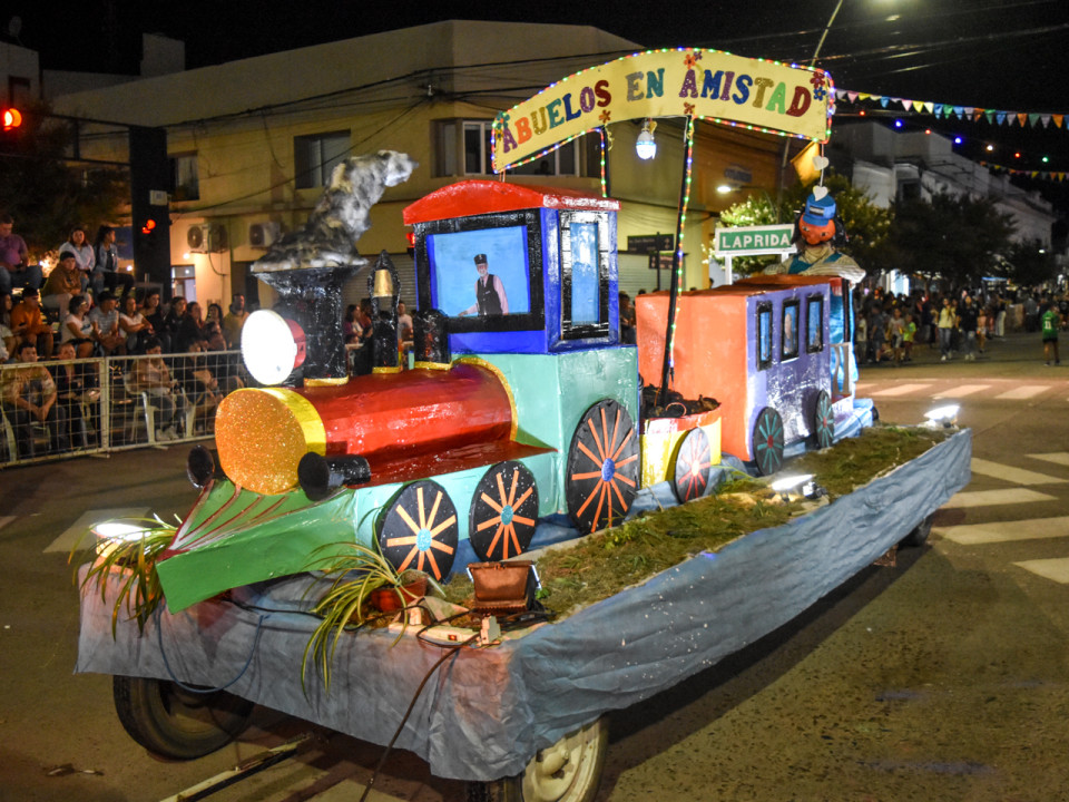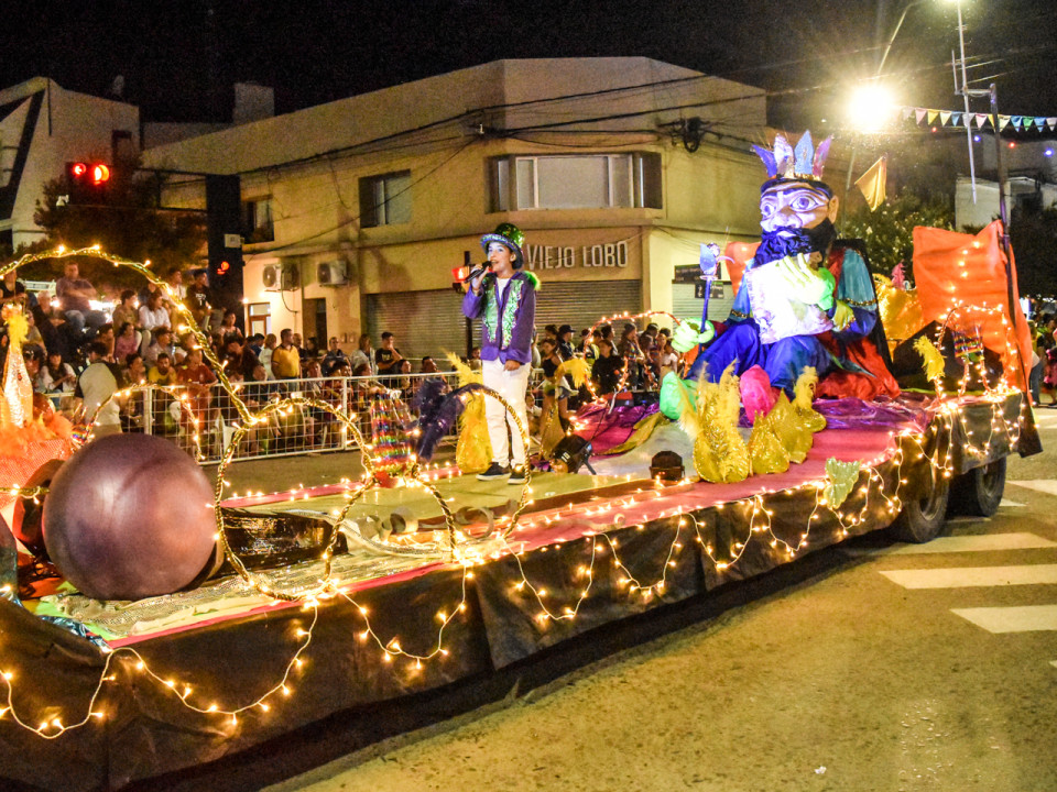 Encabezó el desfile la carroza que transportaba al Rey Momo (construido por Claudia Bravo y la colaboración de su hermano Mario), y el joven músico Ian Folk interpretando la Marcha del Carnaval de Laprida; escrita su letra y música por Ángel Mazzey.
