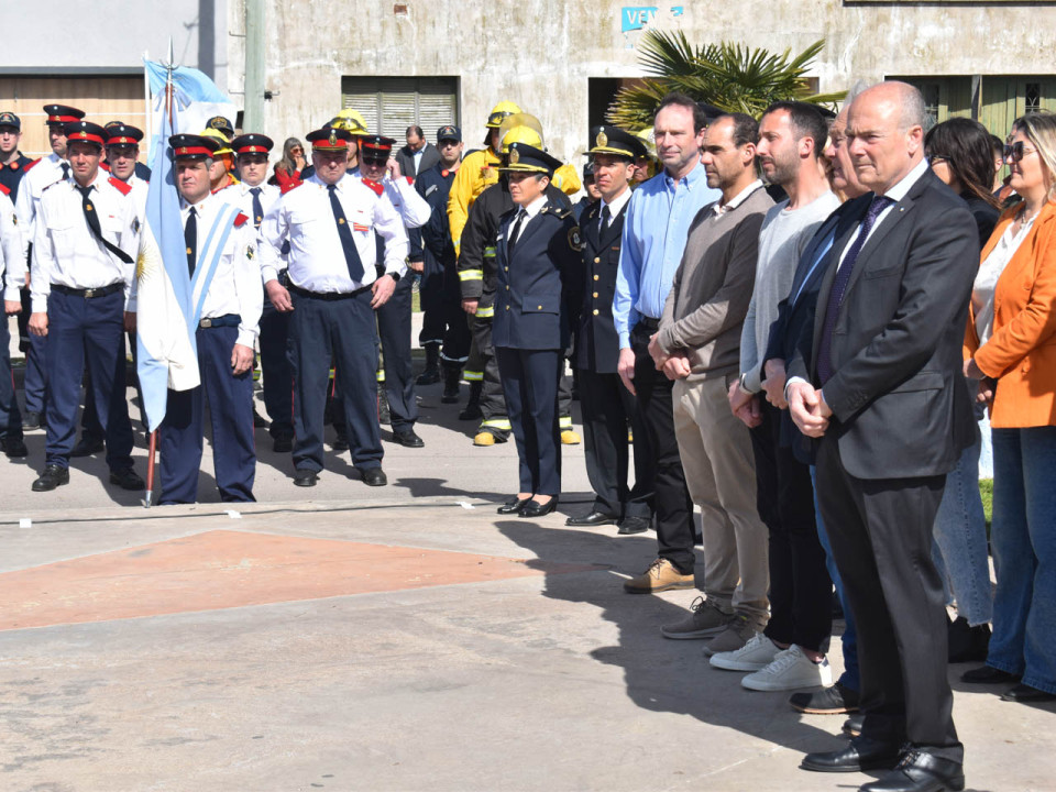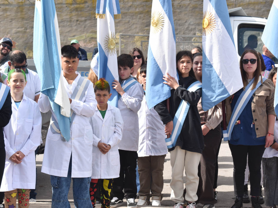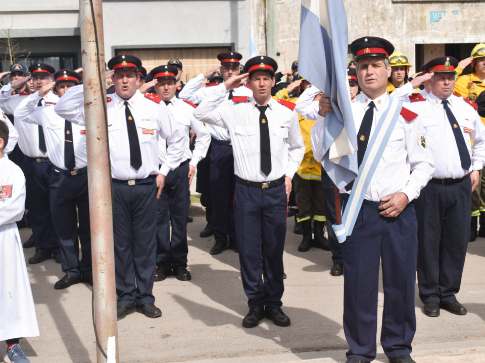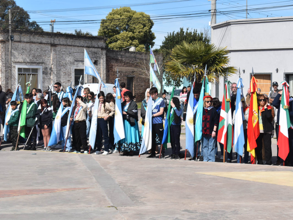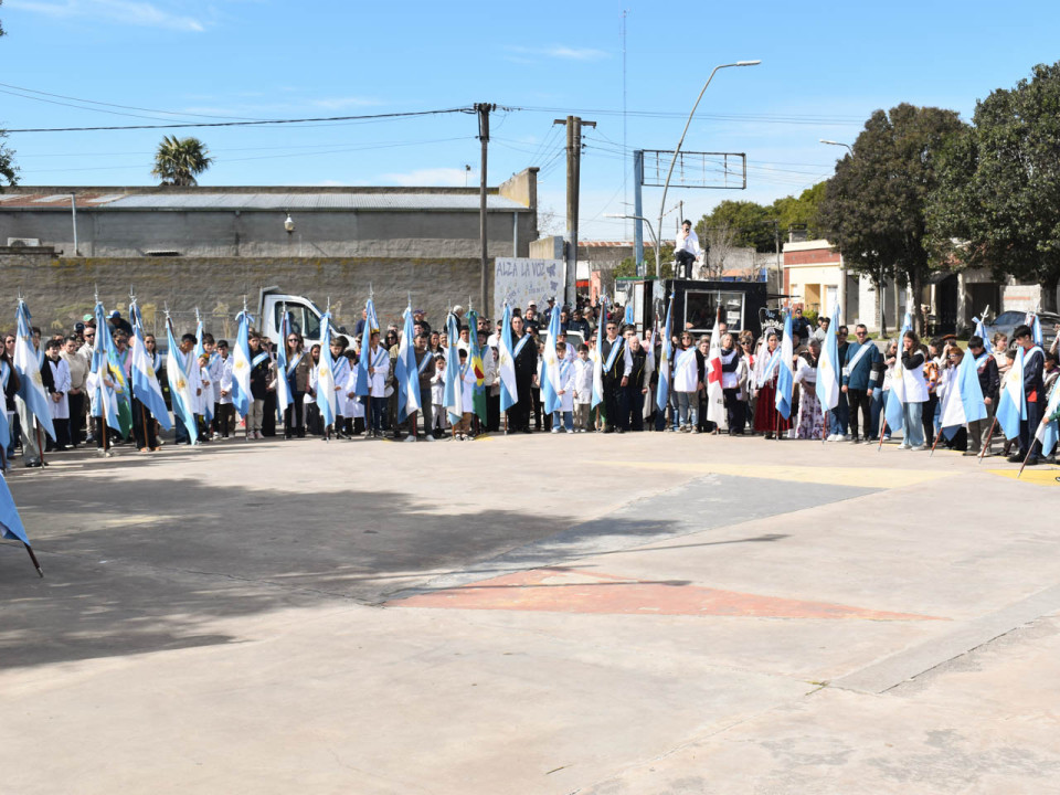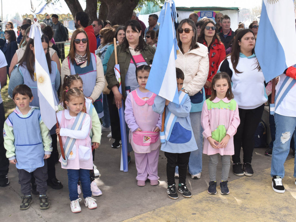 La bandera de ceremonia fue trasladada por integrantes de las siguientes instituciones en un año muy especial para ellas: Centro Recreativo y Empleados de Comercio, Biblioteca Popular Laprida y Malón Danzas. El Intendente Fisher junto a integrantes de estas instituciones izaron la bandera nacional en el mástil del Parque.