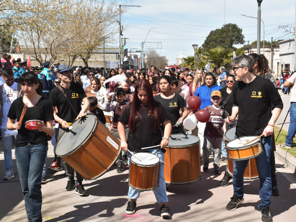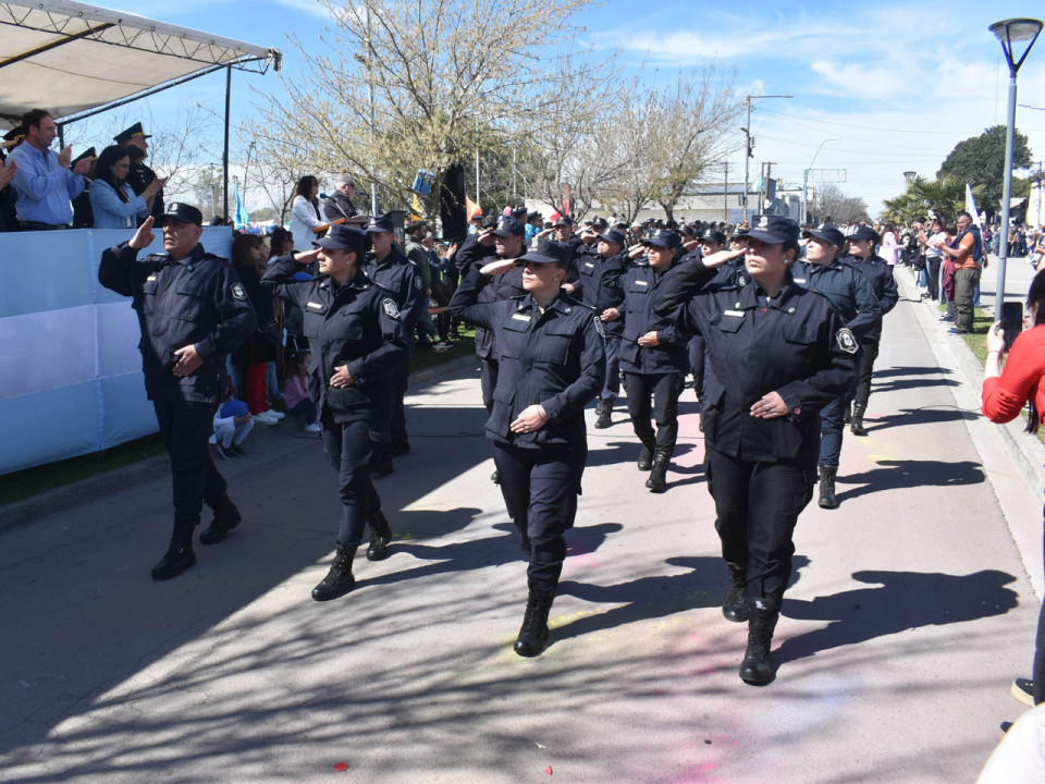 Con el acompañamiento de la Banda Sinfónica de la Policía de la Provincia de Buenos Aires, fueron marchando a pie y con sus vehículos los integrantes de cada una de las instituciones que saludaban a su paso a todos los espectadores con aplaudían y festejaban su participación.