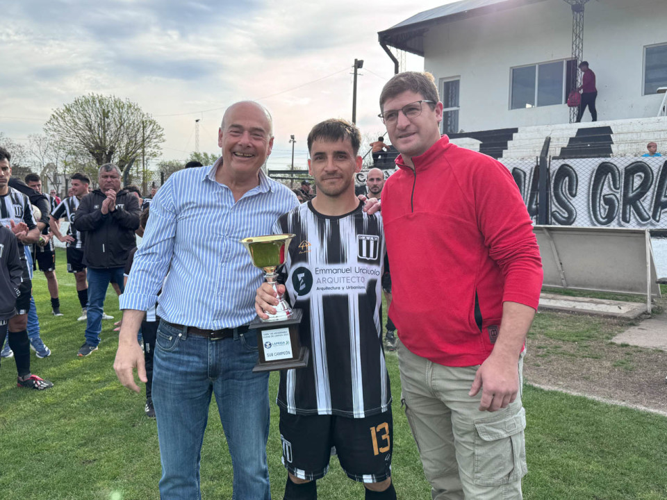 El Intendente Municipal, Alfredo Rubén Fisher, entregó la Copa al equipo campeón, que recibió el jugador Camilo Di Filippo, acompañado por el Presidente de la Liga Lapridense de Fútbol, Marcos Lacal y el Director de Deportes, Agustín Bernadaz.