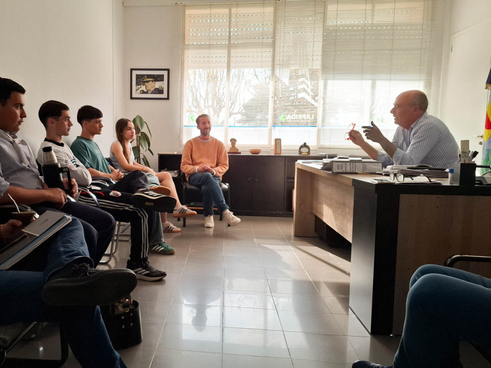 Representantes de las distintas promociones 2025 de las Escuelas Secundarias de Laprida mantuvieron un encuentro con el Intendente Municipal, Alfredo Rubén Fisher, el Secretario de Gobierno, Cristian Sampayo Álvarez, el Secretario de Protección Ciudadana y Orden Público, Daniel Bayonés y el Subsecretario de Desarrollo Local, Marcos Lavandera.