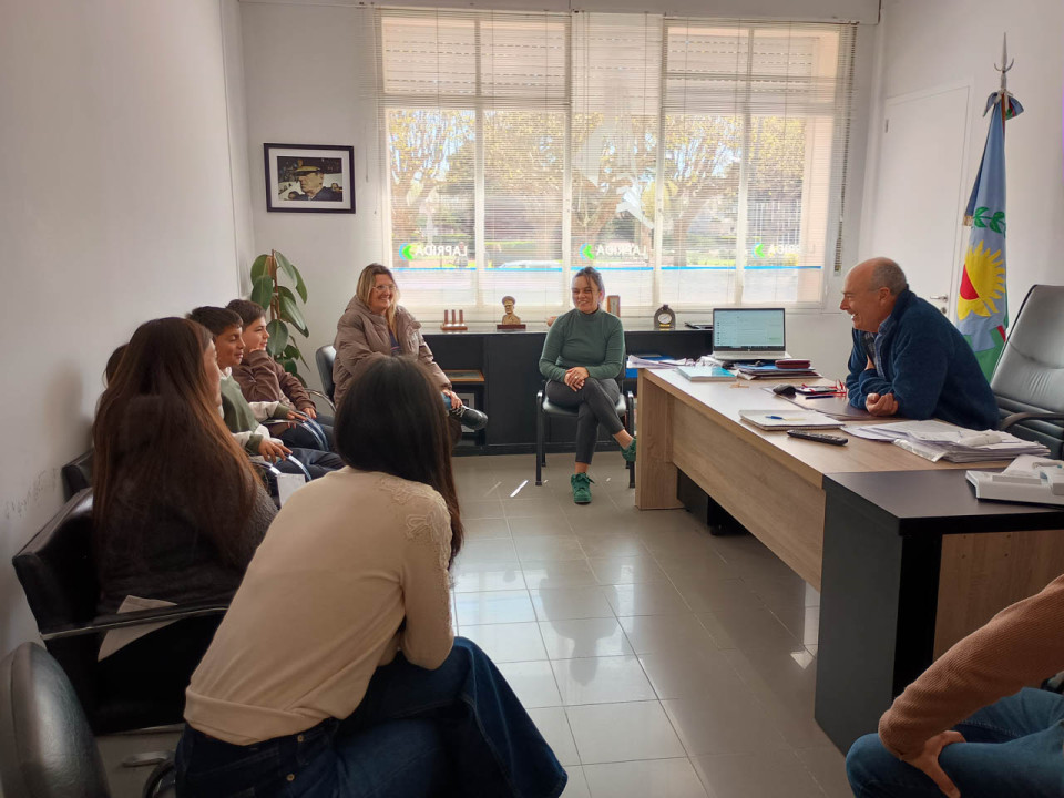 En un sostenido ida y vuelta con el Intendente Fisher, respondieron a cada una de sus consultas: cómo habían ideado y desarrollado el proyecto, y sumaba ideas y propuestas para su concreción; y también sobre distintos aspectos del cuidado del ambiente. Surgió de ahí una futura visita a la Planta de Tratamiento de Residuos Sólidos Urbanos y la colaboración del Municipio para plasmar el mural en lo que requieran.