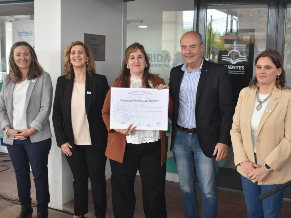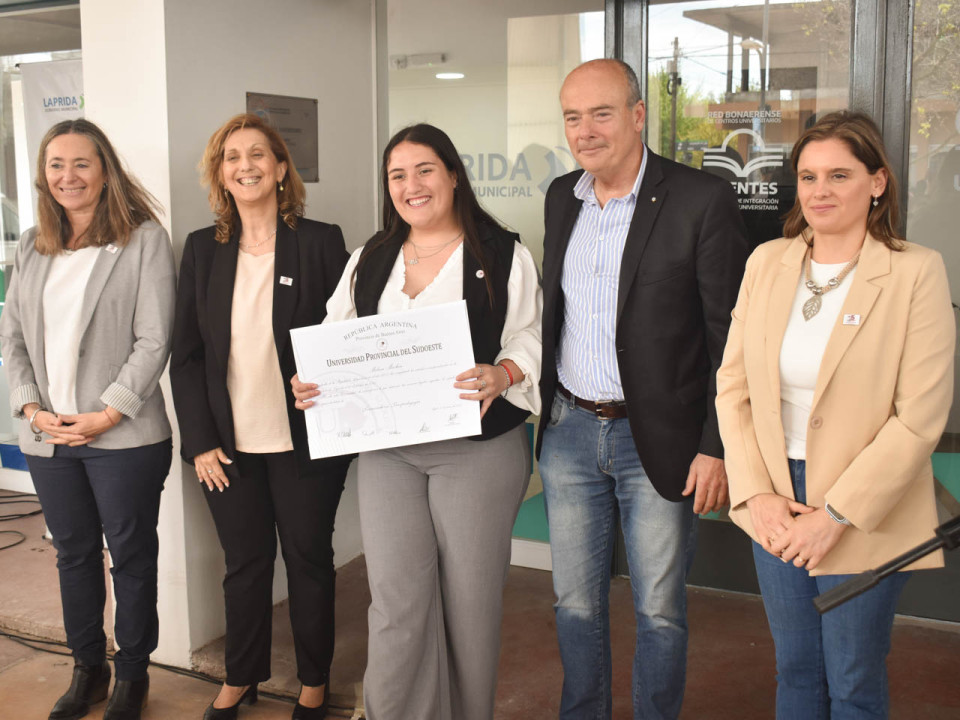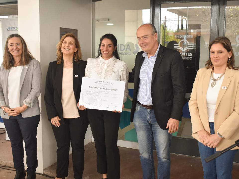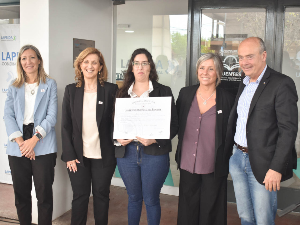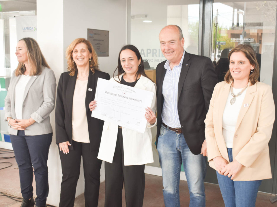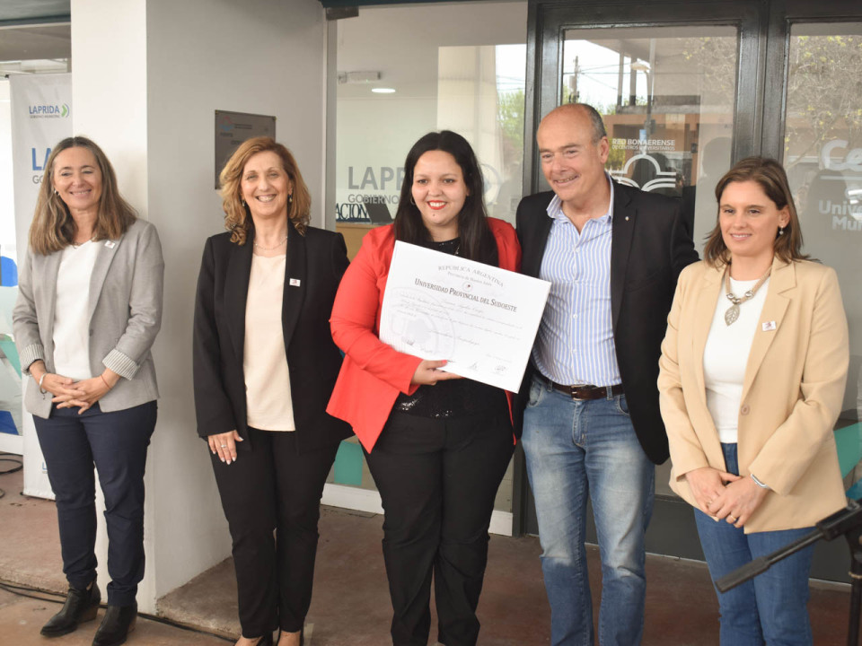 Por su parte, la egresada de la licenciatura en Psicopedagogía Melisa Rojas, valorizó también la posibilidad de la formación académica y de crecimiento educativo en carreras de grado en Laprida.