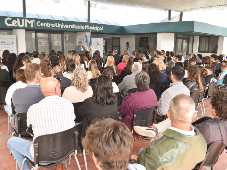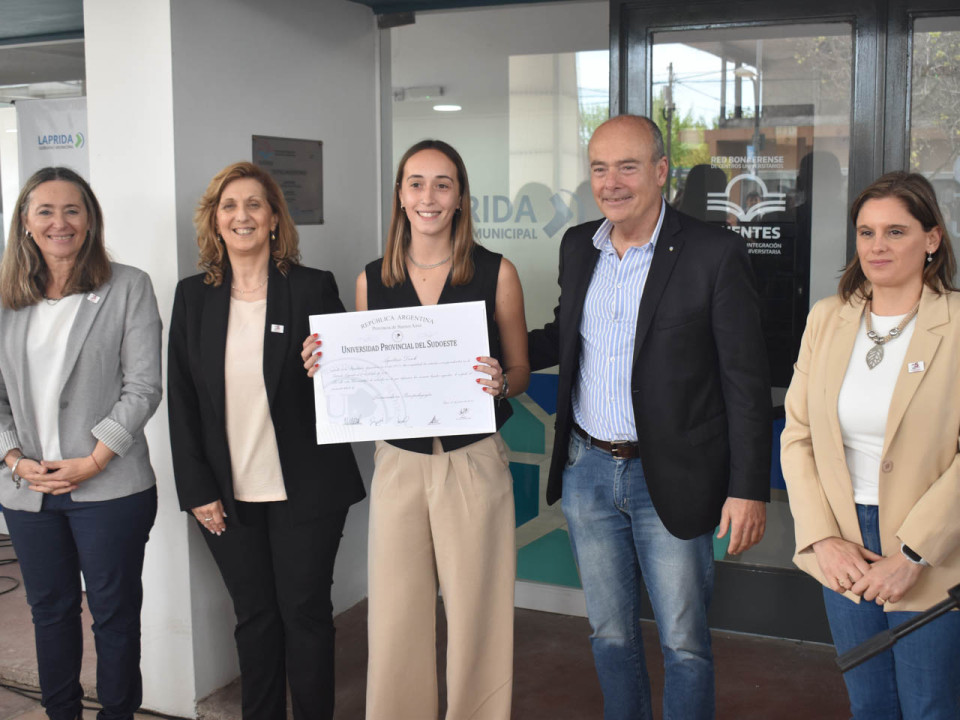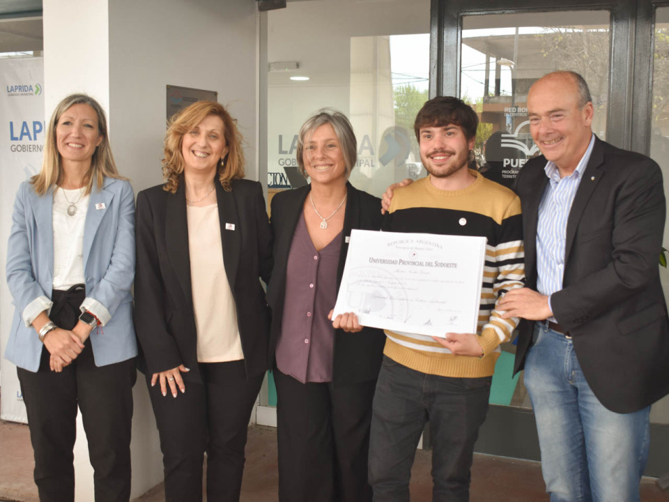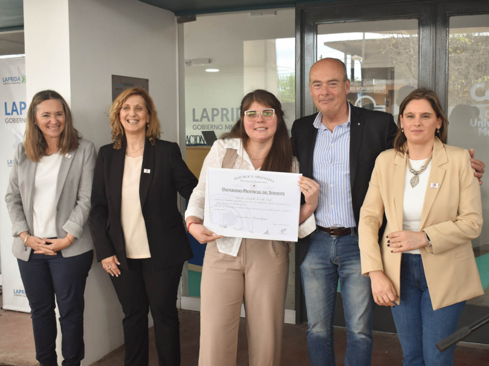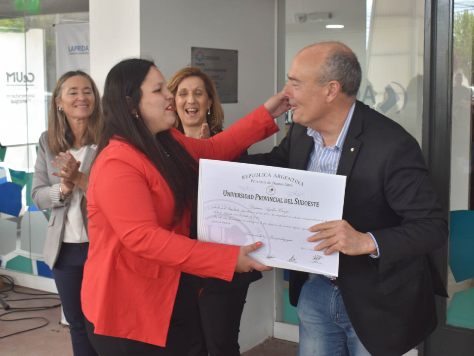 El Centro Universitario Municipal se vistió de gala en un emotivo acto de Colación de Grado y entrega de diplomas a egresados y egresadas de la Universidad Provincial del Sudoeste que cursaron carreras en su sede de Laprida.