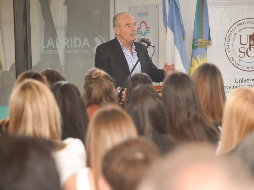 Dio la bienvenida y puso de relevancia el nuevo espacio municipal, el Intendente Fisher, quien destacó el rol fundamental de la educación pública, gratuita y de calidad y de la posibilidad de estudiar carreras universitarias en nuestra ciudad; lo propio hizo la rectora Savoretti, quien en sus palabras y posterior a la emisión de video destacó los 25 años de la creación de la UPSO y su trayectoria y labor académica en las distintas sedes en territorio provincial.