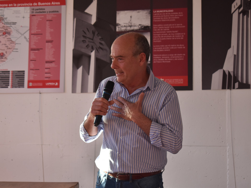 Luego, fue el turno de a Natalia Saizar, coordinadora del Centro de Interpretación, quien realizó un breve repaso por todas las obras patrimoniales que construyó este reconocido arquitecto en Laprida.