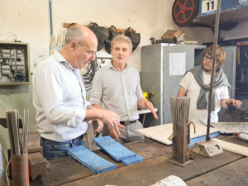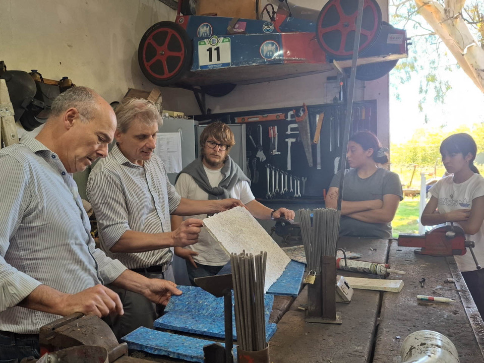 Además, y en vista de este gran proyecto que llevan adelante, realizó la entrega de un aporte económico de dos millones ciento cincuenta mil pesos ($2.150.000) que serán destinados a la adquisición de un pirómetro digital controlador de temperatura para extrusora (empleado en la producción de madera plástica lineal), como también en materiales e insumos para la línea de producción de placas plásticas (chapones, planchuelas de espesores superiores a 5 mm, prensa hidráulica y/o elementos y materiales necesarios para su construcción).