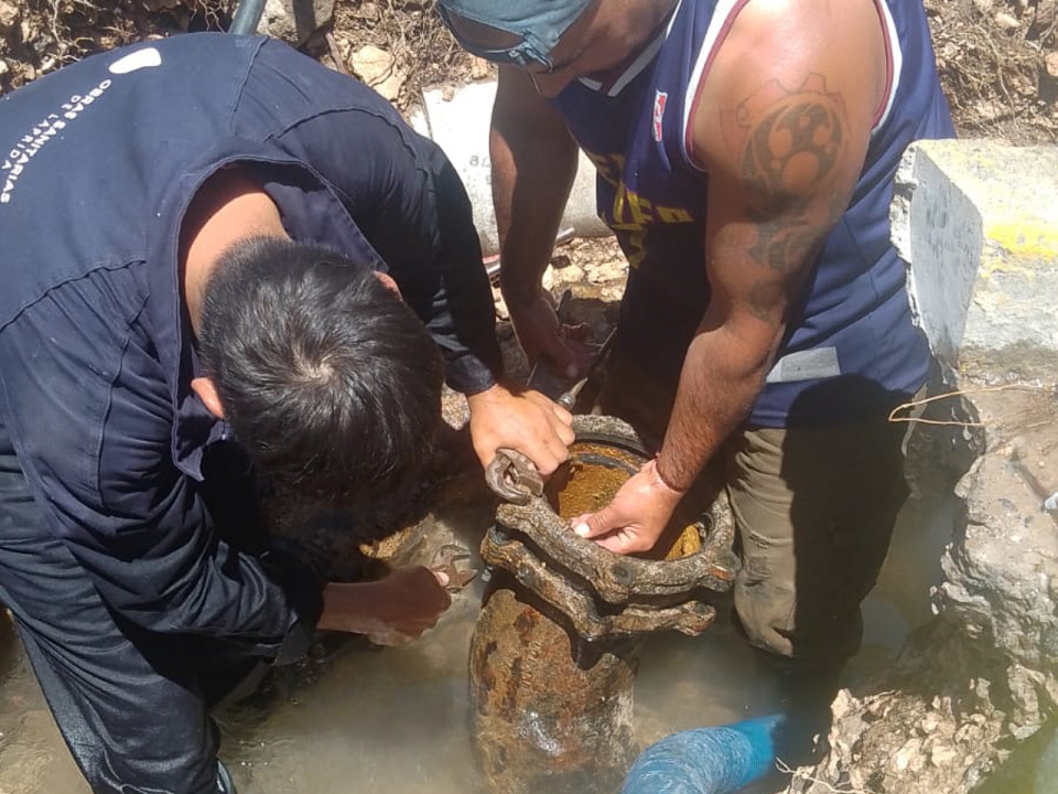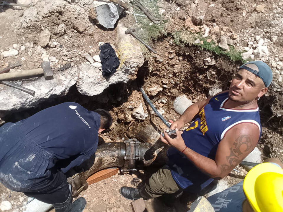 Después de más de 15 horas ininterrumpidas de trabajo del personal de la Subsecretaria de Obras Sanitarias, se realizó el cambio de juntas en la cañería de impulsión del servicio de agua corriente que trasladan la misma hacía el tanque de agua ubicado en la calle Santamarina y Benito Martínez.