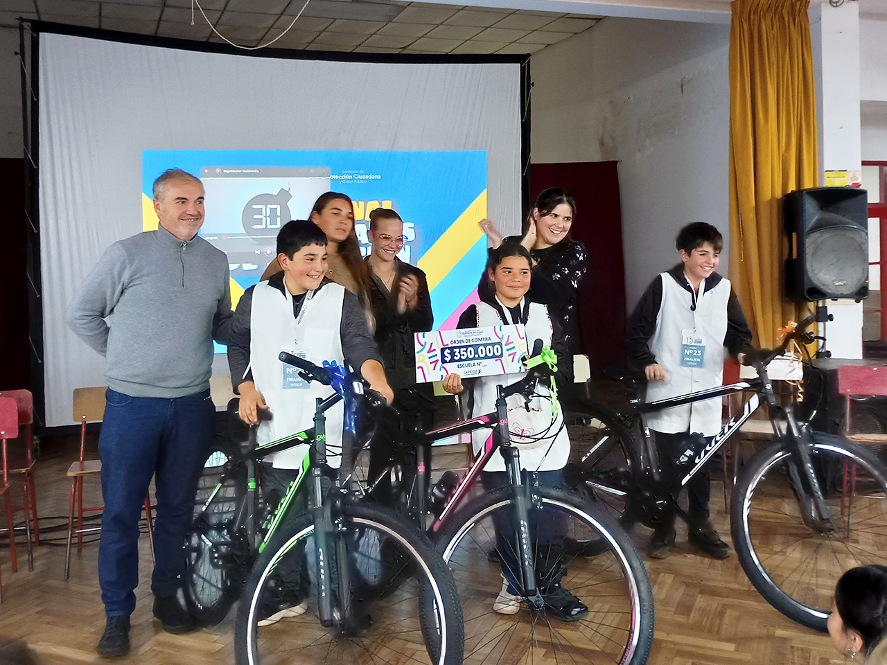 El Secretario de Protección Ciudadana y Orden Público, Daniel Bayonés junto a la Directora de Protección Ciudadana y Prevención Vial, Josefina Aguado presentaron el lanzamiento de las 14º Olimpiadas de Educación Vial, que inician este jueves 16 de abril y de las que participan alumnos y alumnas de los 5º y 6º años de las Escuelas Primarias del distrito.